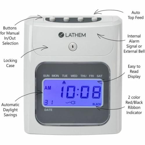 Lathem 400E Top Feed Electronic Time Clock Kit - Card Punch/Stamp - Month, Date, Week, Time, Bi-weekly, Semi-monthly, Month Record Time