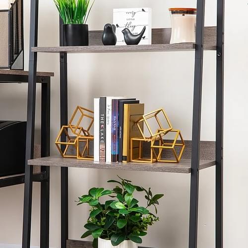 Mind Reader Geometric Cube Metal Book Ends, 6", Gold