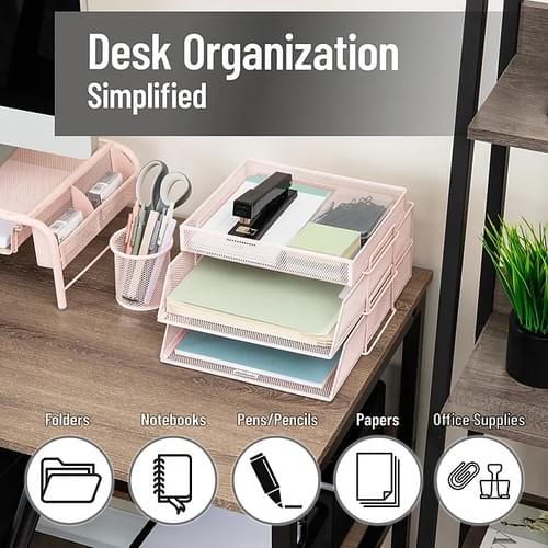 Dual Tier Design: Two stacked trays provide ample space for organizing papers, folders, and notebooks