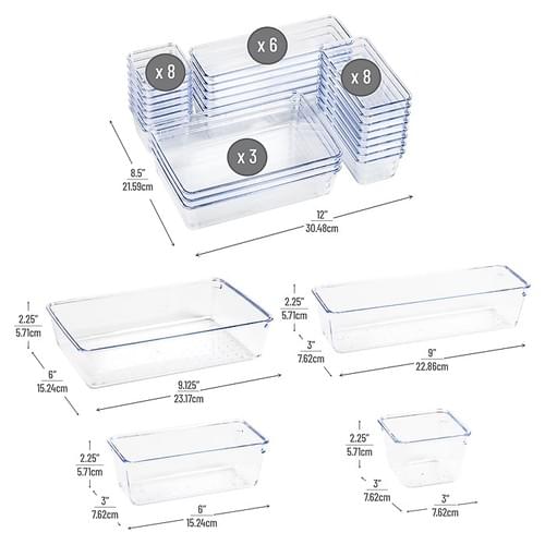 25-Piece Acrylic Storage Set: A stylish and functional drawer organizer set perfect for offices, kitchens, bathrooms, and more. Maximize space and declutter with these practical, deep storage compartments