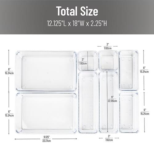 8-Piece Acrylic Storage Set: A stylish and functional drawer organizer set perfect for offices, kitchens, bathrooms, and more. Maximize space and declutter with these practical, deep storage compartments