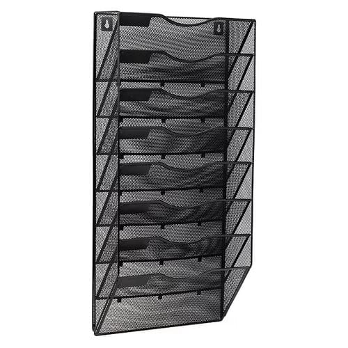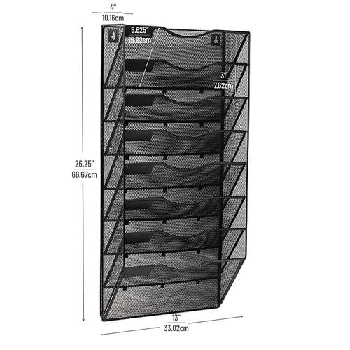 Mind Reader Wall File Organizer, 8-Pocket Hanging Document Rack, Office Wall Mount, Metal, Black