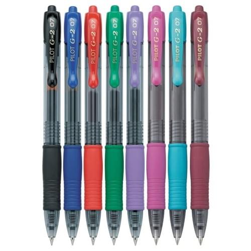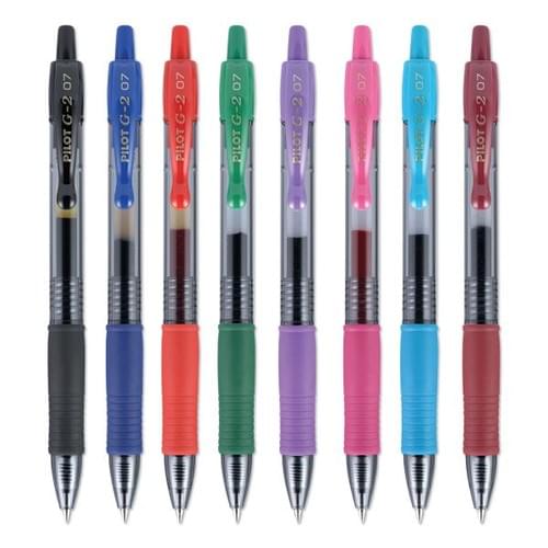 Pilot G2 Retractable Gel Pens, Fine Point, 0.7 mm, Clear Barrels, Assorted Ink, Pack Of 8 Pens