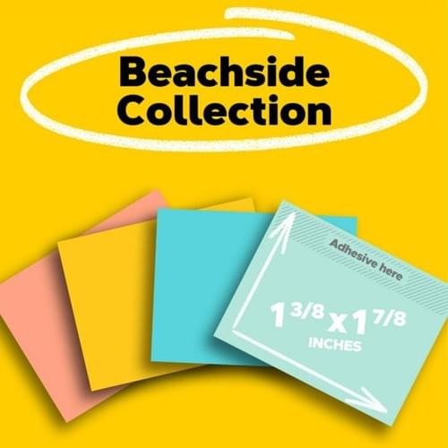 Post-it Notes, 1 3/8 in x 1 7/8 in, 24 Pads, 100 Sheets/Pad, Clean Removal, School Supplies and Office Products, Beachside Café Collection