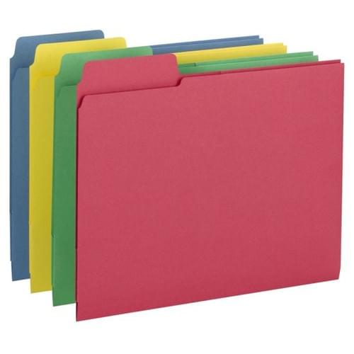 Assorted-color section folders in a pack of 12 to offer a variety of options.