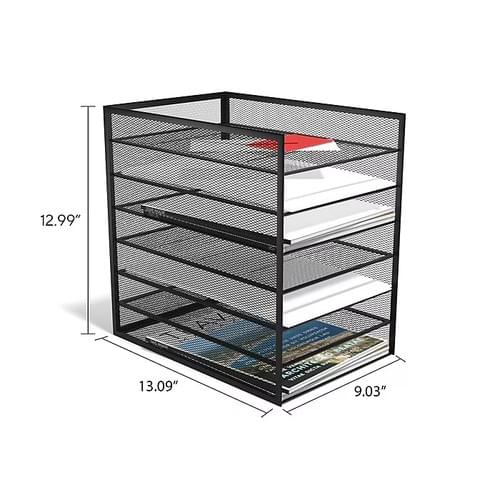 TRU RED 7-Compartment Metal Mesh File Organizer Matte Black