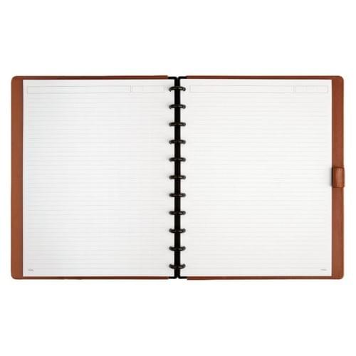 TUL Discbound Notebook With Leather Cover, Letter Size, Narrow Ruled, 60 Sheets, Brown