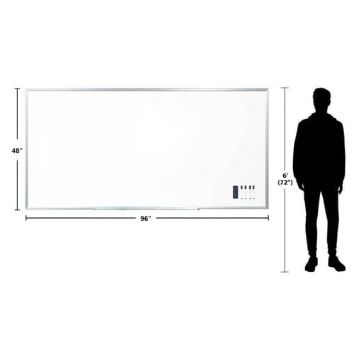 WorkPro Porcelain Magnetic Dry-Erase Whiteboard, 48" x 96", Aluminum Frame With Titanium Finish